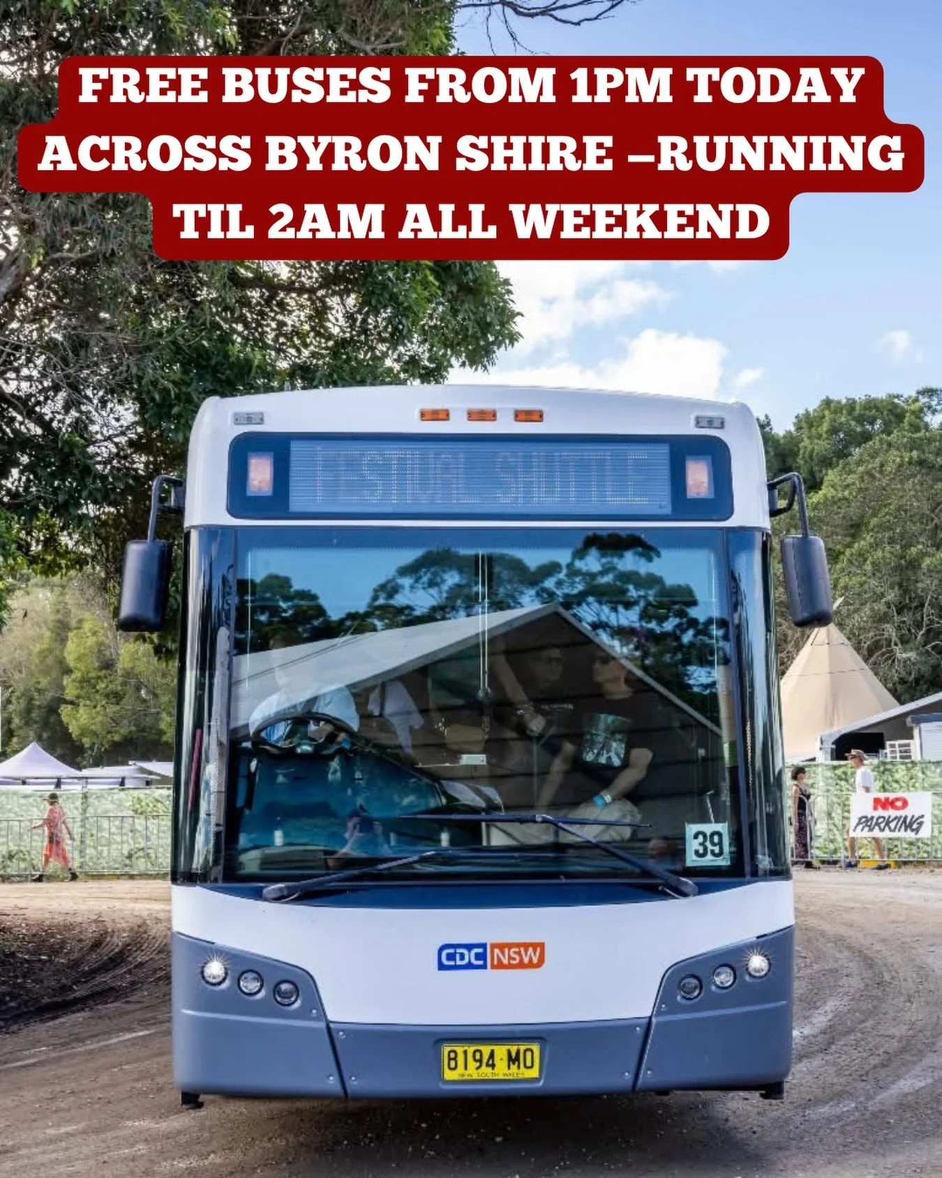 View fullsize Free buses are rolling out from 1pm today across Byron Shire, running through to 2am all weekend to connect a huge, region-wide program of live music, markets and events.